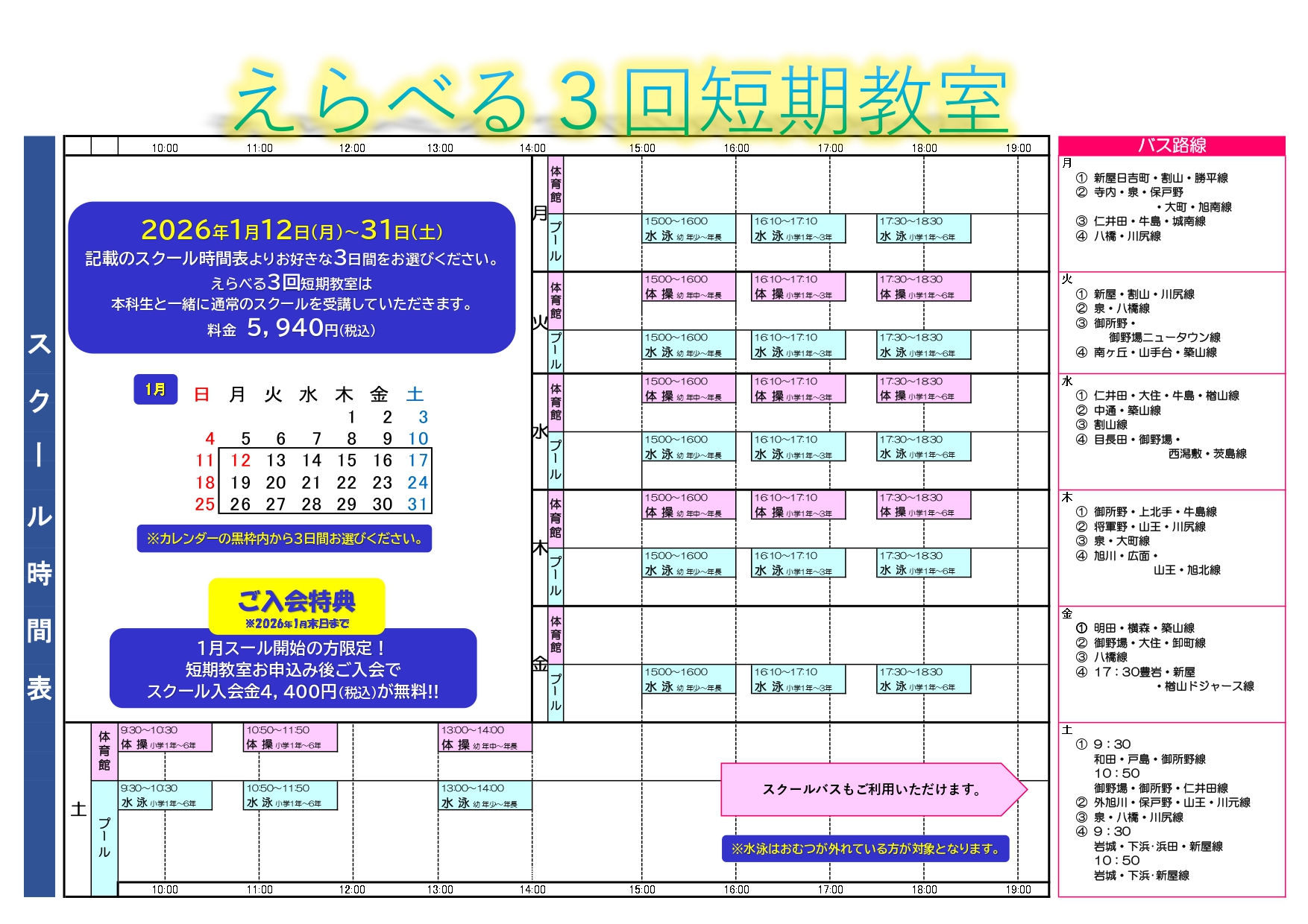 選べる3回短期教室